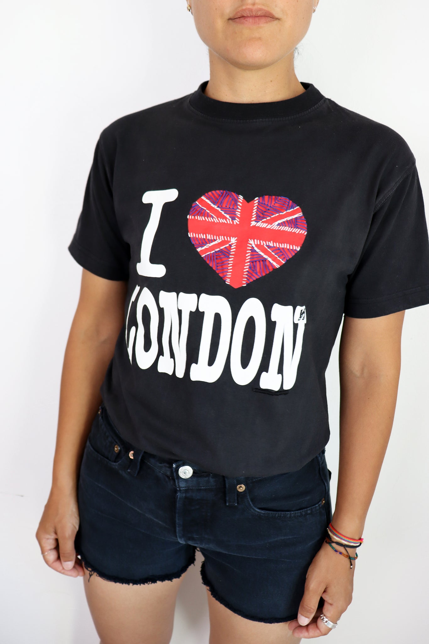 T-shirt vintage noir "I LOVE LONDON" upcyclé et détourné