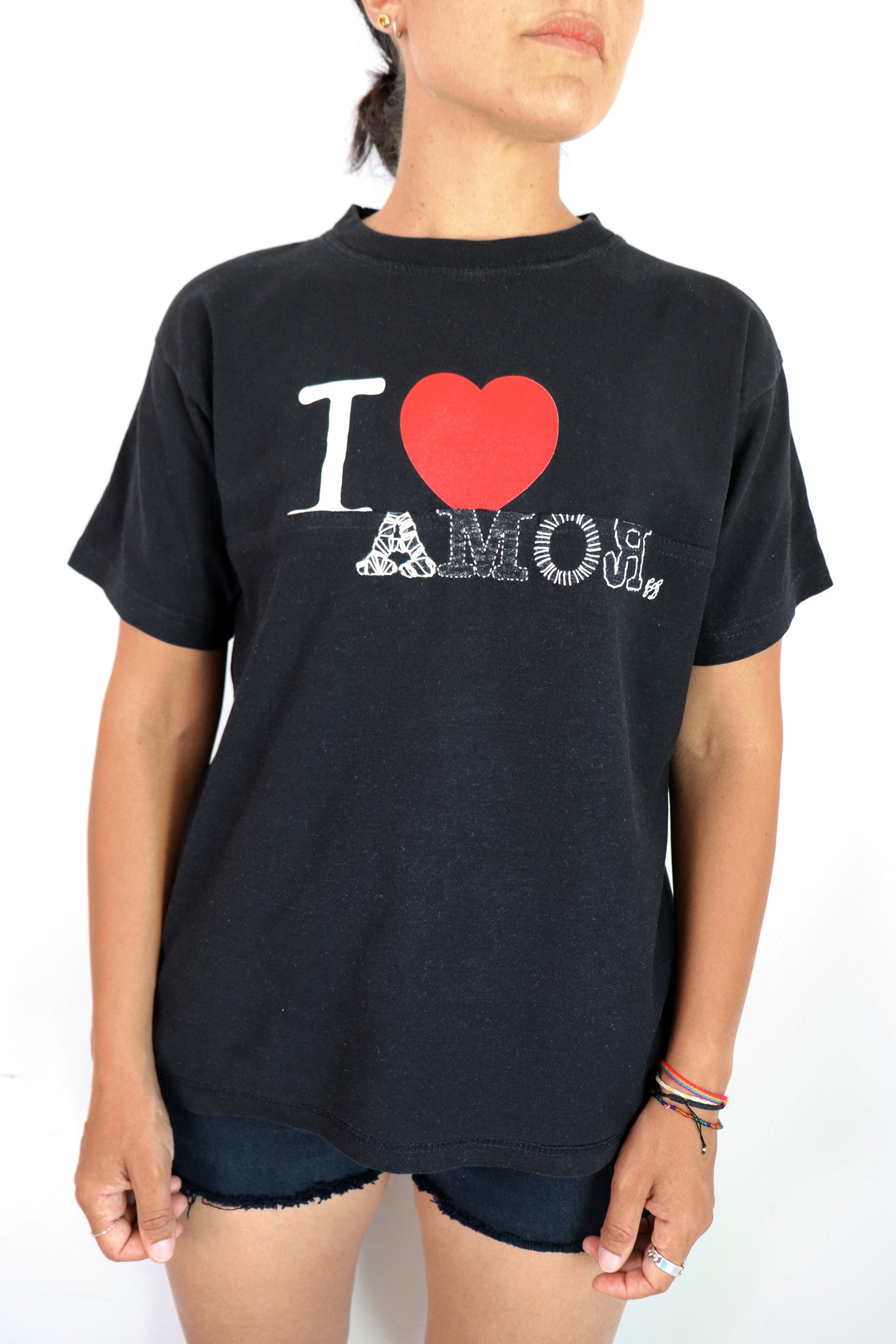 T-shirt vintage noir "I LOVE ROMA" upcyclé et détouné